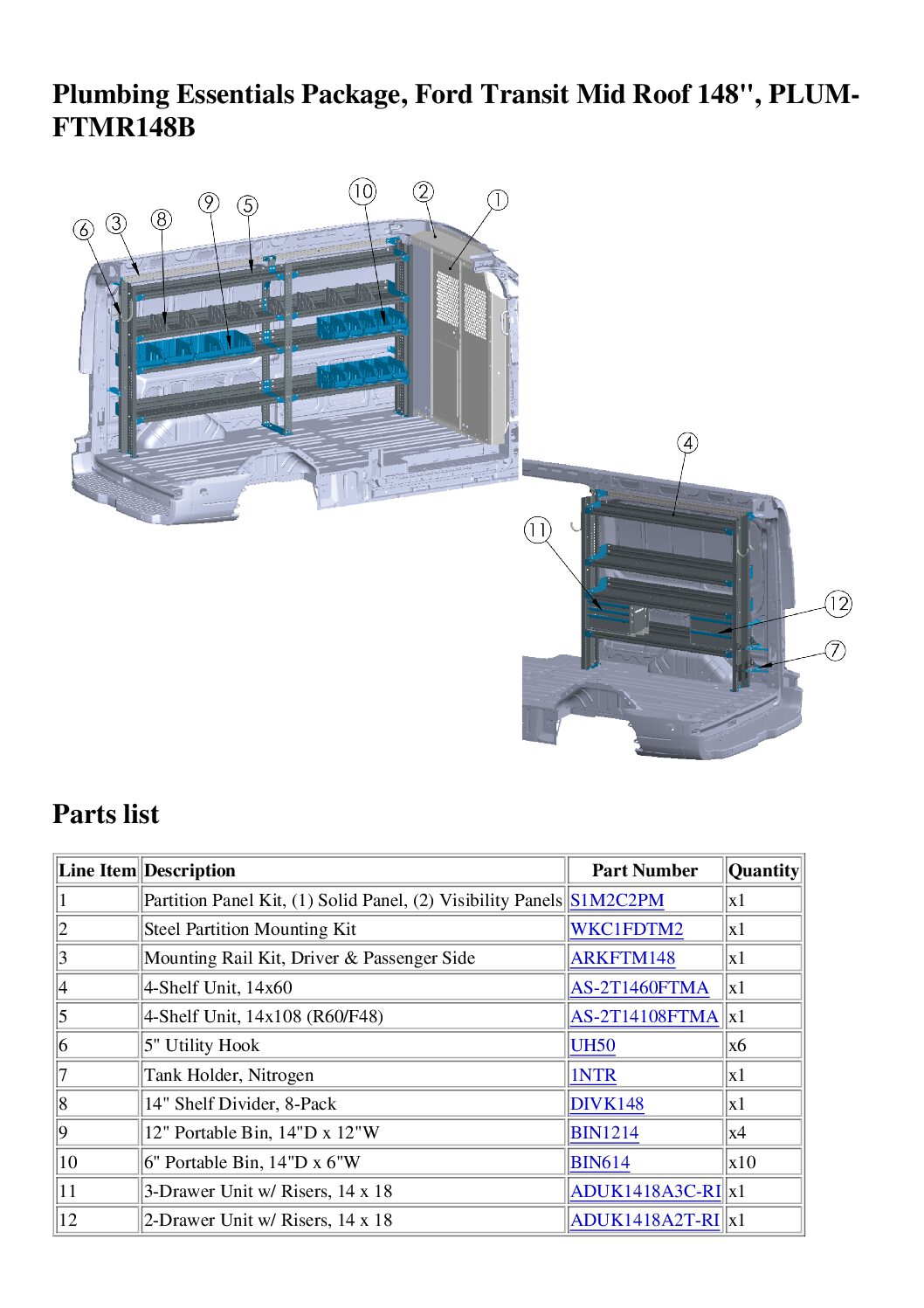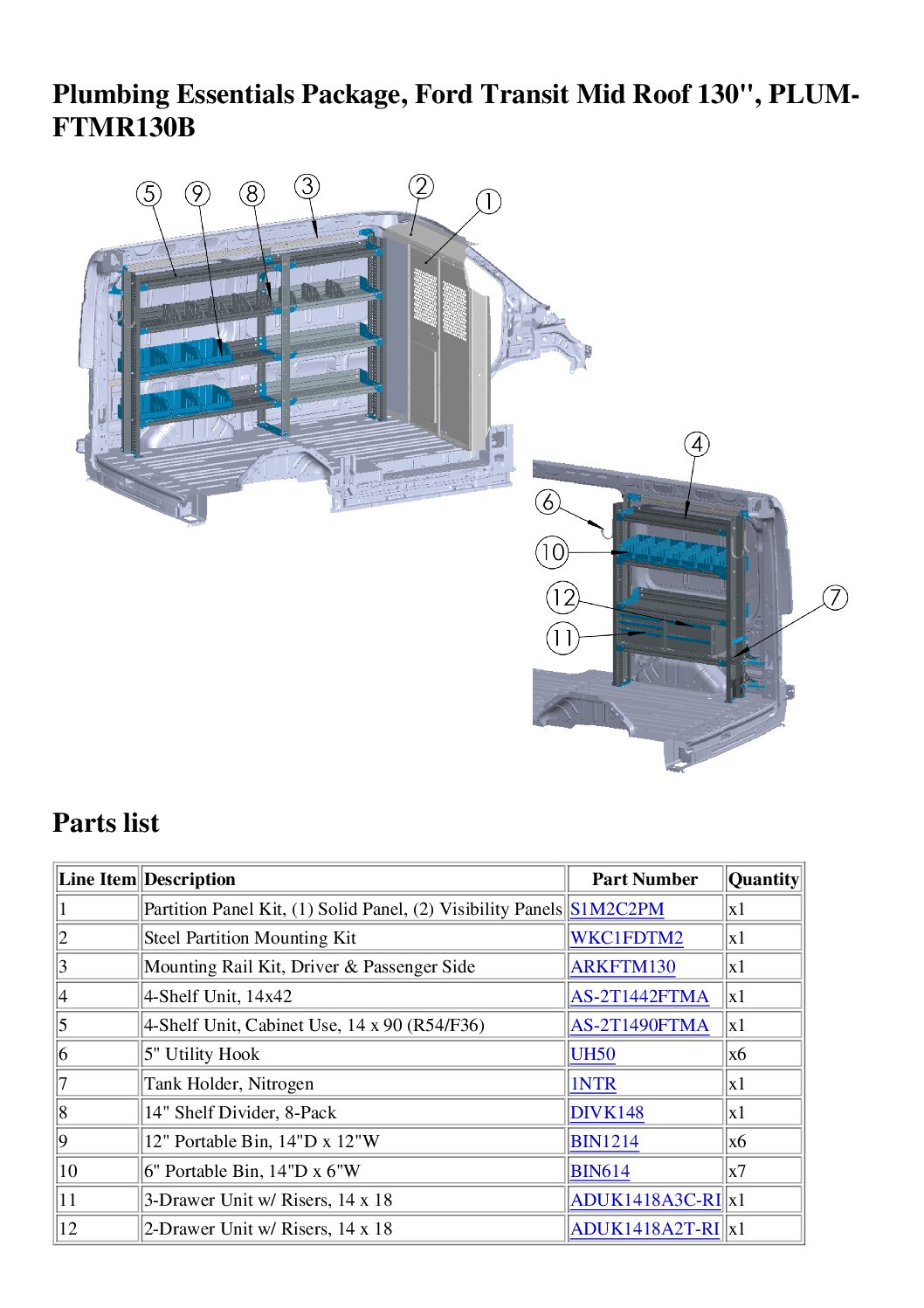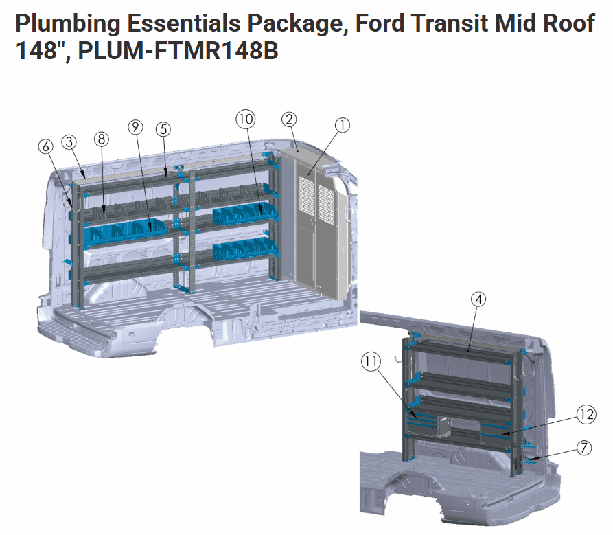 Adrian Steel Commercial Van Interiors Adrian Steel Next Gen Plumbing Essentials for Mid Roof Ford Transit – PLUM-FTMR130B & PLUM-FTMR148B