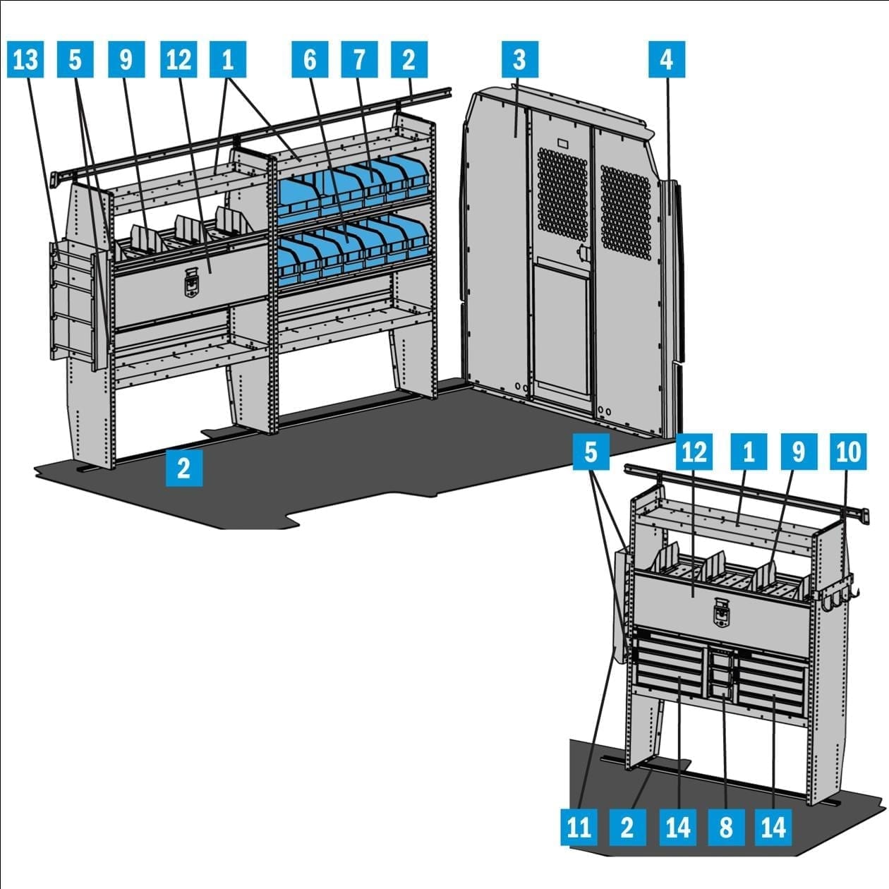 Adrian Steel Commercial Van Interiors Adrian Steel Electrical Contractor Package for High Roof Ford Transit Model 4319TH148